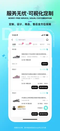 我們提供定制、設(shè)計(jì)、商品、售后、服務(wù)五大保障,全程可視化跟蹤,讓你隨時掌握定制進(jìn)度。從商品開箱記錄到球鞋設(shè)計(jì)滿意,再到定制成品鞋滿意,我們?nèi)套o(hù)航。更有超長售后保障,讓你無后顧之憂。